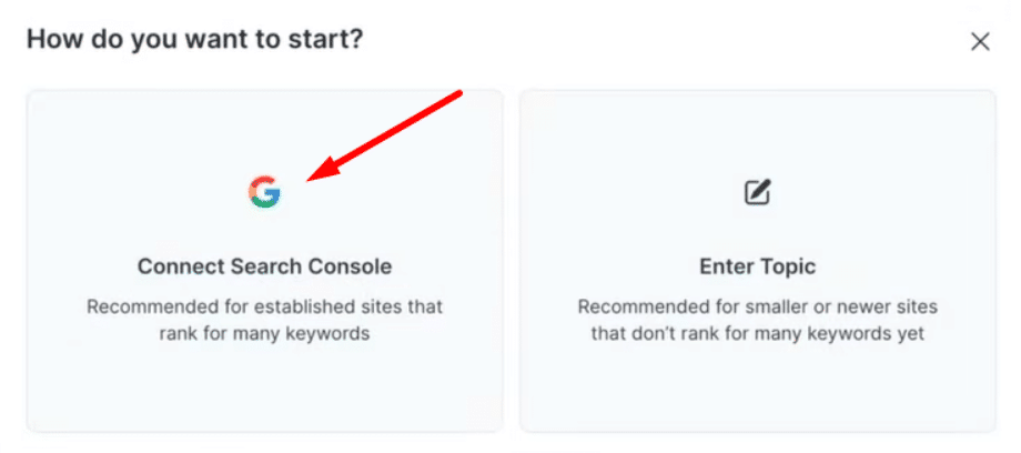 After creating your Topical Map in Surfer SEO, you can connect it with Google Search Console.