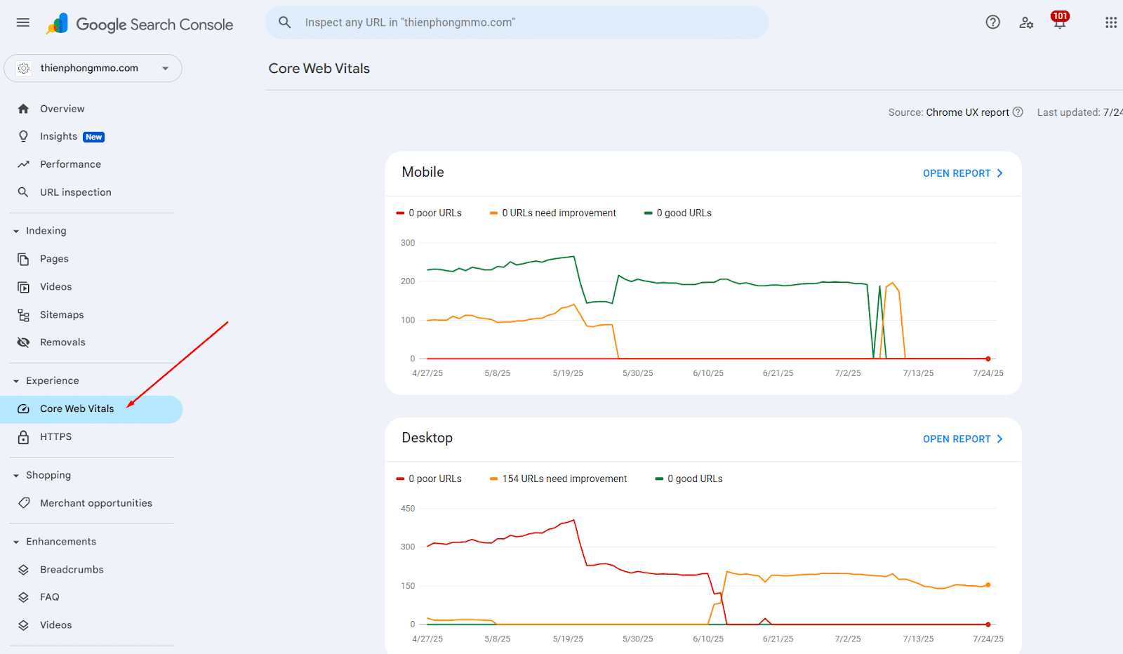 In addition, you should monitor Core Web Vitals—a set of performance metrics available directly inside Search Console. Some common issues to watch for include: