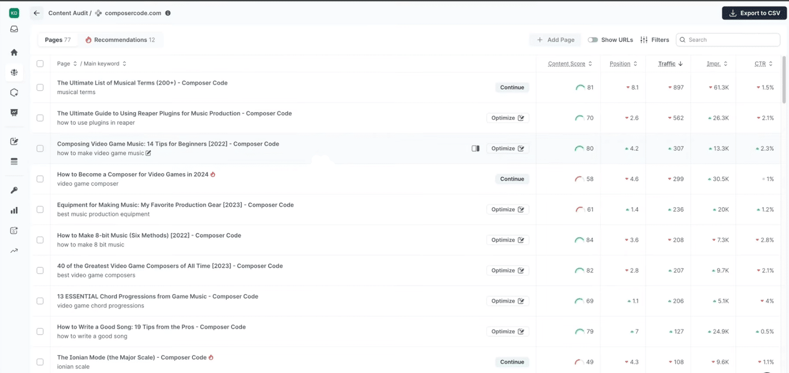 - Articles under 1,000 words with little to no organic traffic