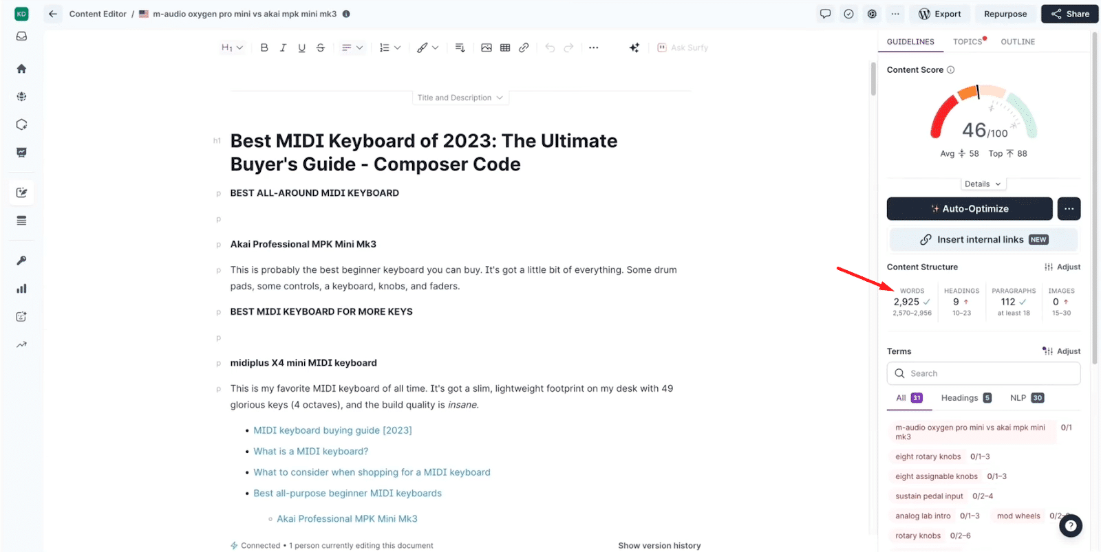 It will analyze your on-page SEO, highlight missing topics, and suggest what needs to be added or improved.