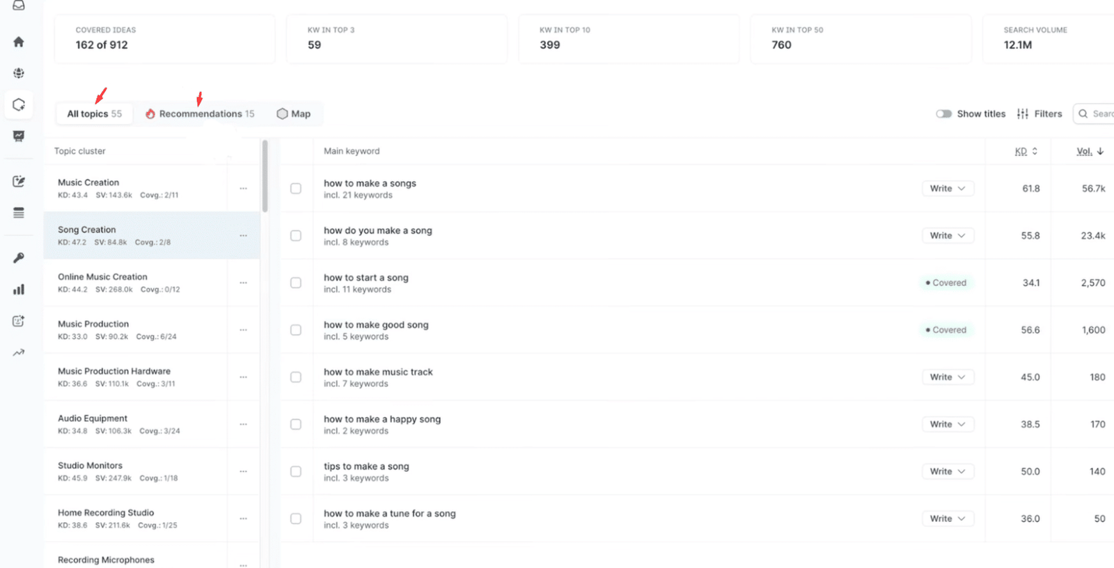 From there, you’ll get a comprehensive data-driven report. It will suggest relevant topics for you to create content on—helping you systematically build and expand your topical authority.