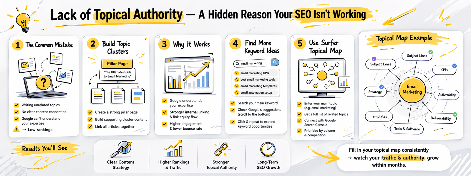 As you gradually fill in this map, you’ll start to see noticeable improvements in both traffic and authority—often within just a few months.