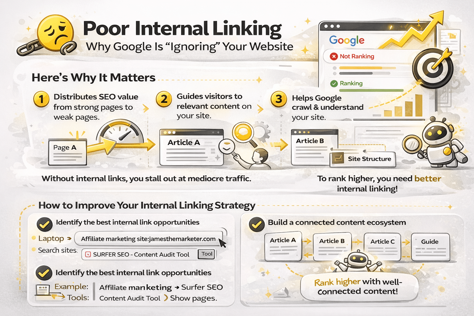 But without a clear structure, strong internal connections, or a central “pillar” page, Google still sees your content as scattered and unstructured.