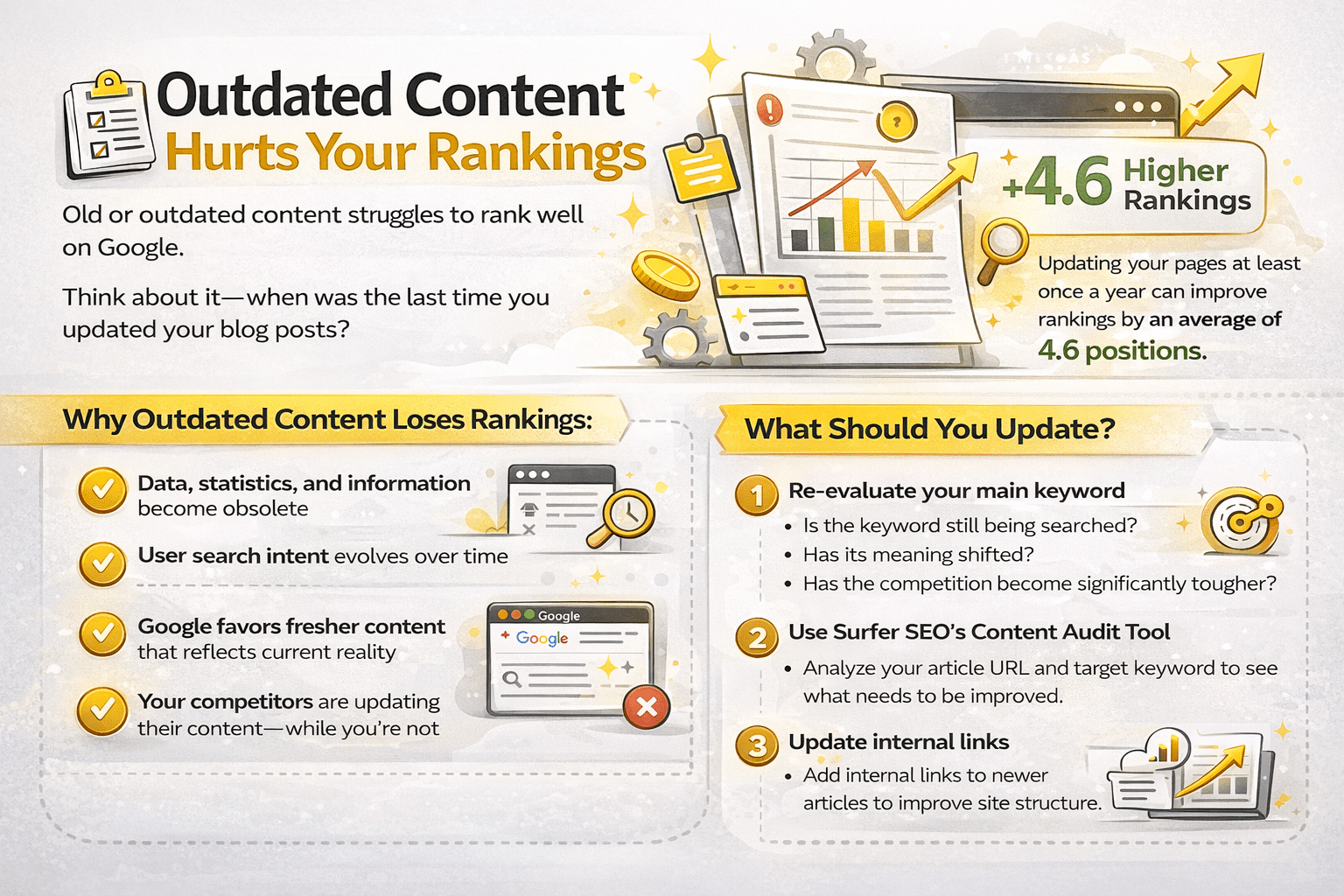 One of the most common reasons your website struggles to rank on Google is simple: your content is outdated.