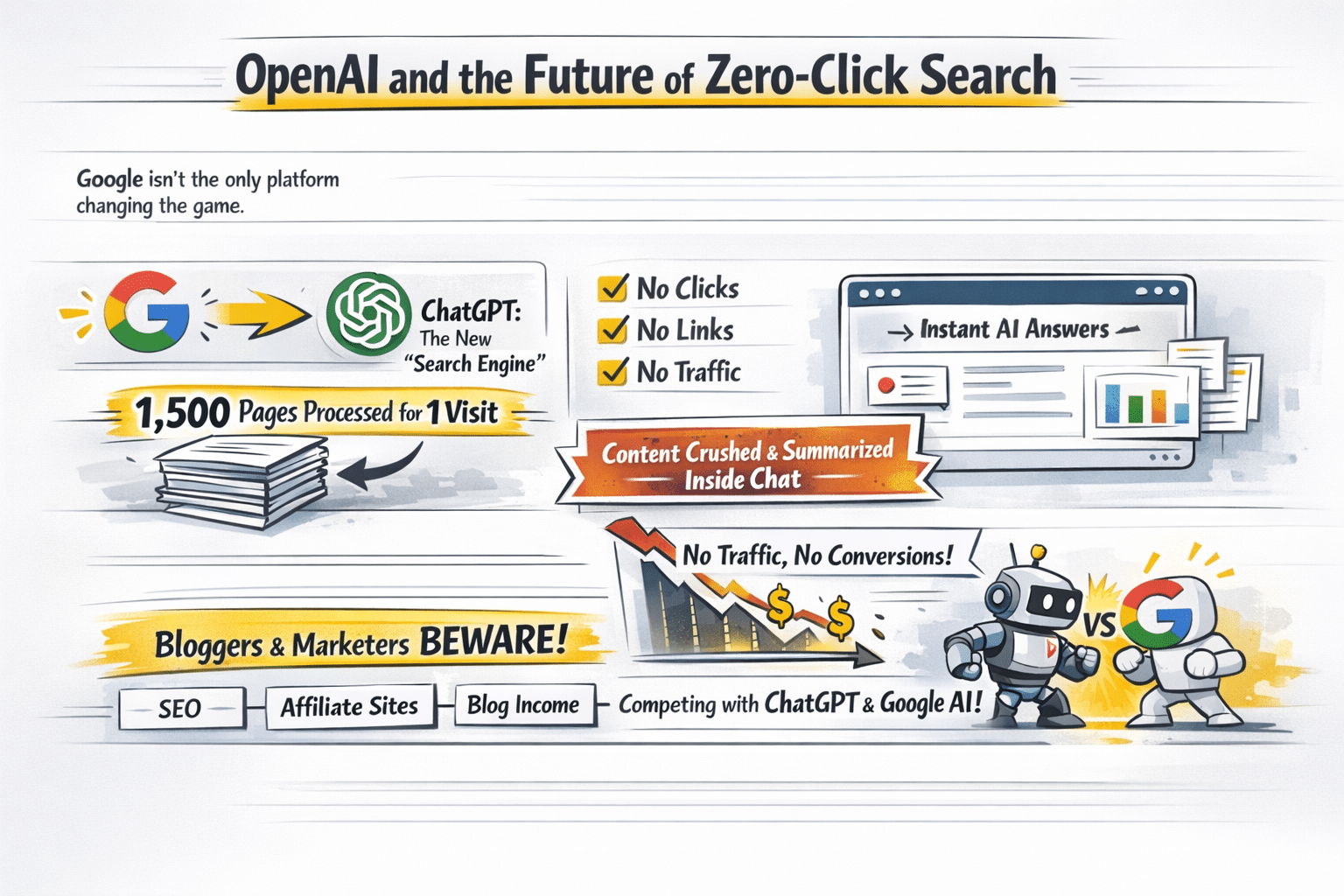Which means: your content gets crushed, summarized, and served directly inside a chat interface—no links, no traffic, no affiliate clicks, no conversions.