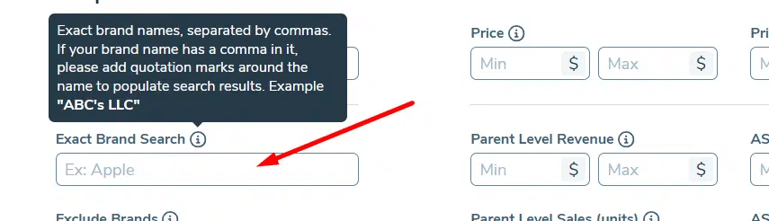 Note: If you copied the brand name (usually shown near the product title), you should use the “Exact Brand Search” field instead.