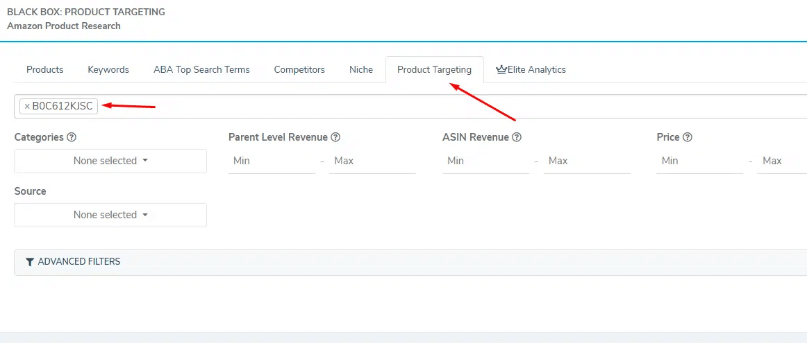Inside Black Box, go to the final tab called “Product Targeting.”