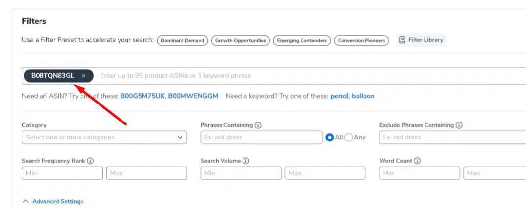 Beyond searching by sales data (in the Products tab), you can also uncover new product opportunities by analyzing what people are actively searching for on Amazon.