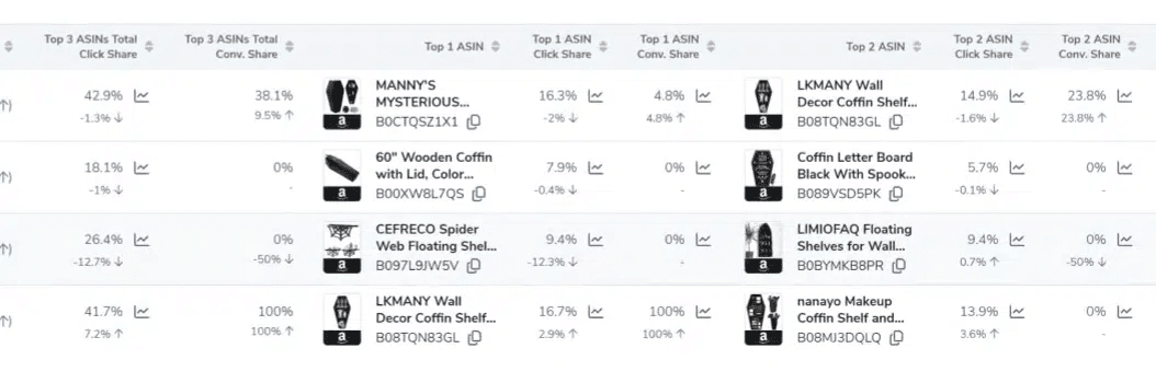 - A full list of products that have been frequently bought together with your selected ASIN over the past 30–60 days