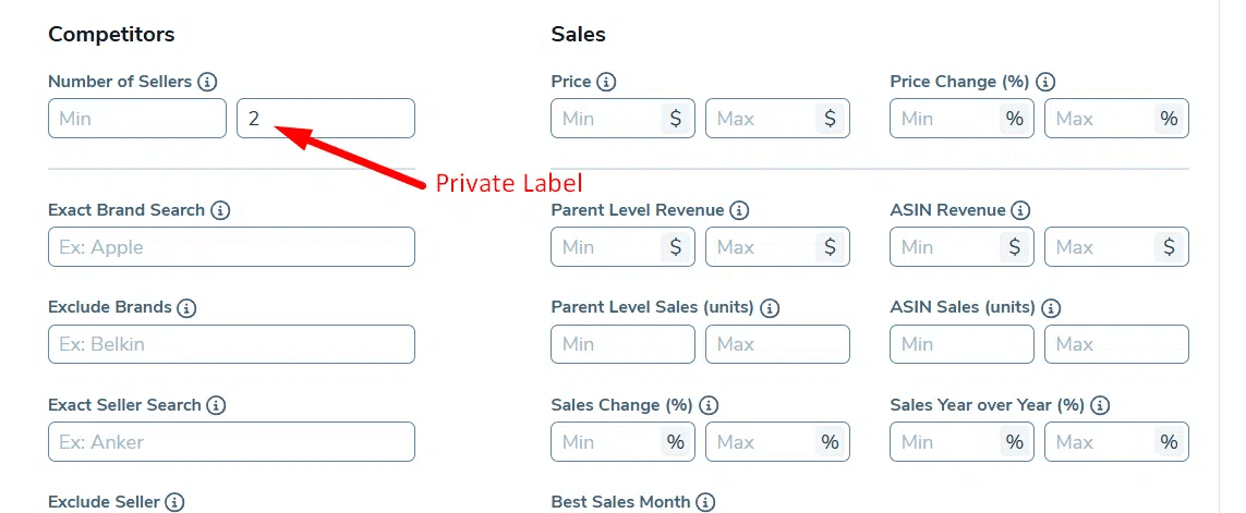 Set this to a maximum of 2. This helps you focus on Private Label products and avoid listings dominated by wholesale or arbitrage sellers.