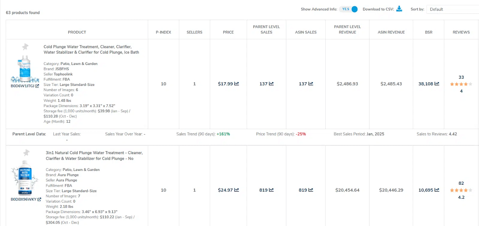 - Parent ASIN Sales (Unit): Total sales across all variations within a listing