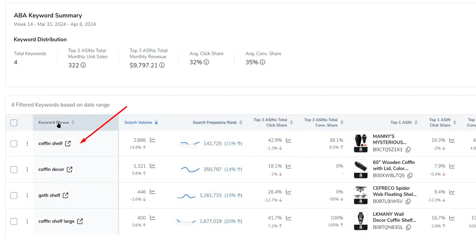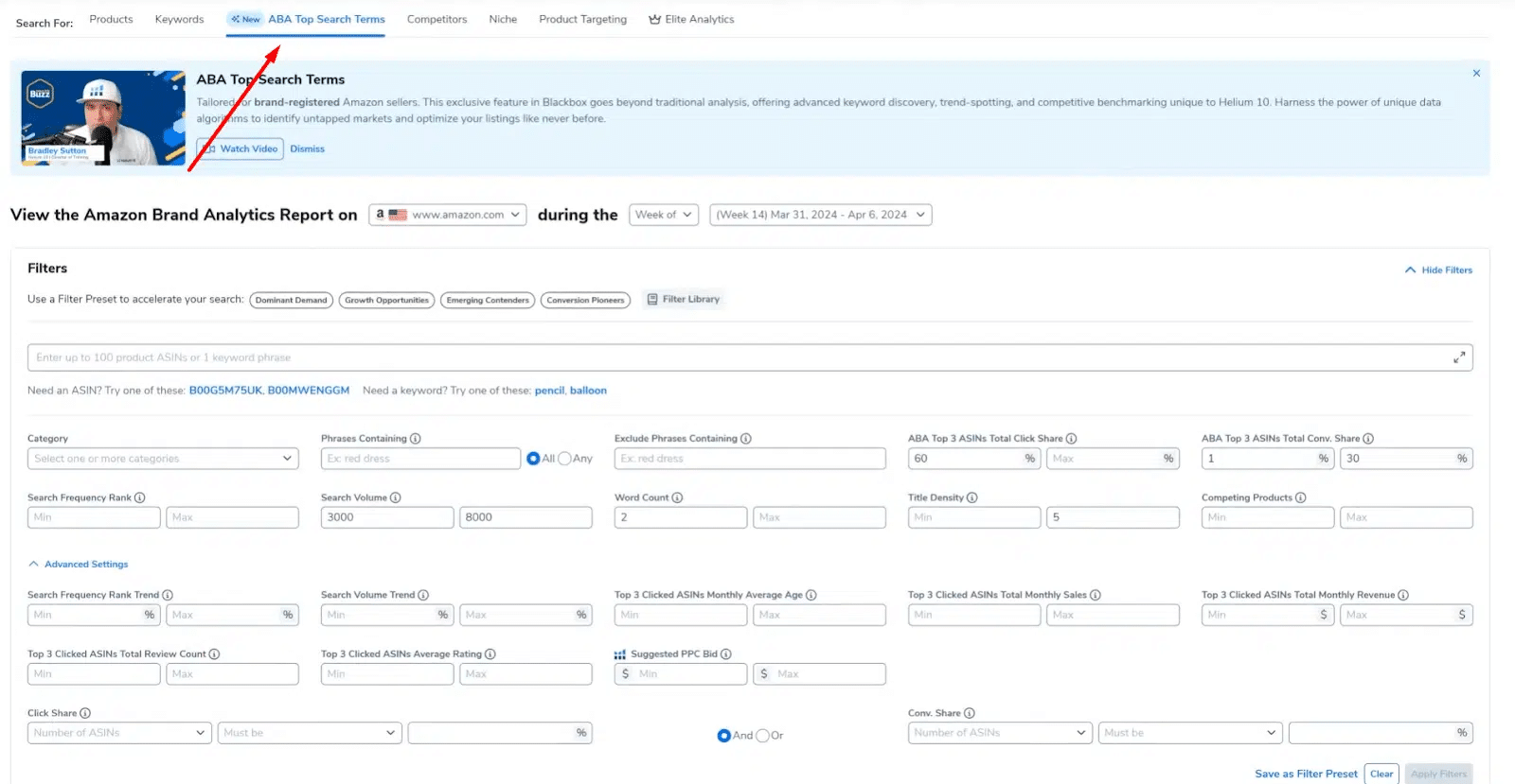 When you use ABA inside Helium 10, you get additional insights that Amazon’s native interface doesn’t provide: