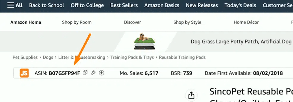 After logging into your account, go to your competitor’s product page on Amazon. There, you’ll find the product’s ASIN.