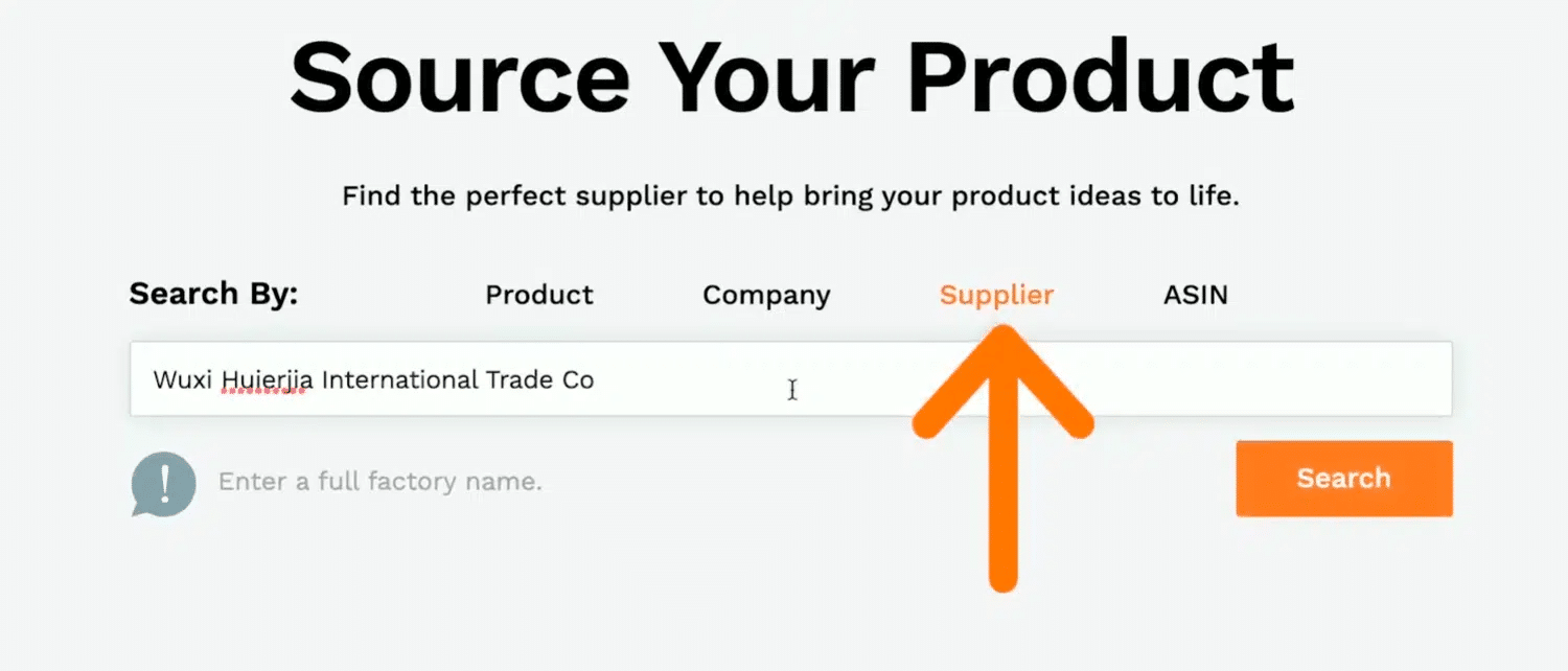 Go to the Supplier Database inside Jungle Scout, enter the supplier’s name, and click “Search.”
