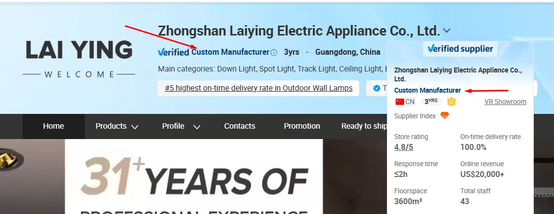 On Alibaba, if you see the label “Manufacturer”, it means they are a factory. If you see “Custom Manufacturer”, it means they also support product customization.