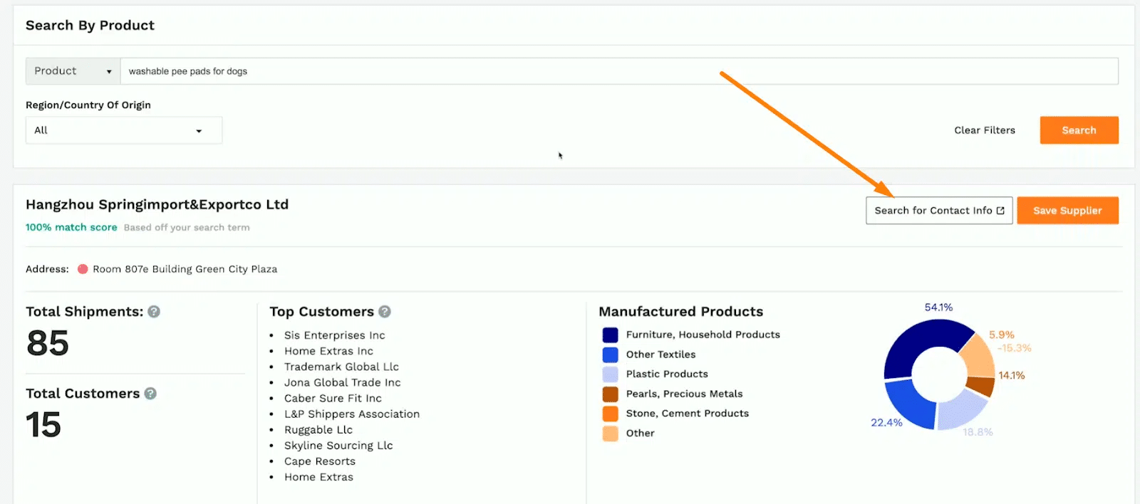 Search for the supplier inside Jungle Scout’s database, then click on “Search for Contact Info.”