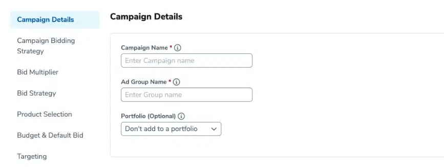 This is similar to creating a campaign directly in the Amazon Ad Console—but cleaner and easier to navigate. Best suited for experienced sellers who want full control over every detail of their campaigns.