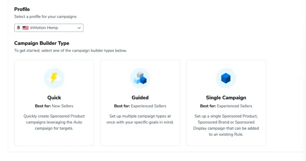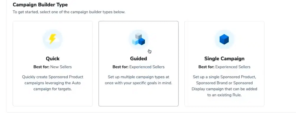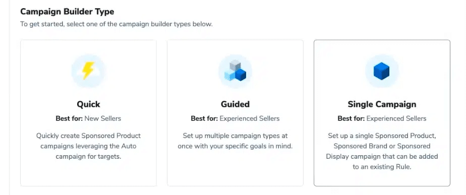 Helium 10 Ads offers three ways to set up campaigns, depending on your level of experience: