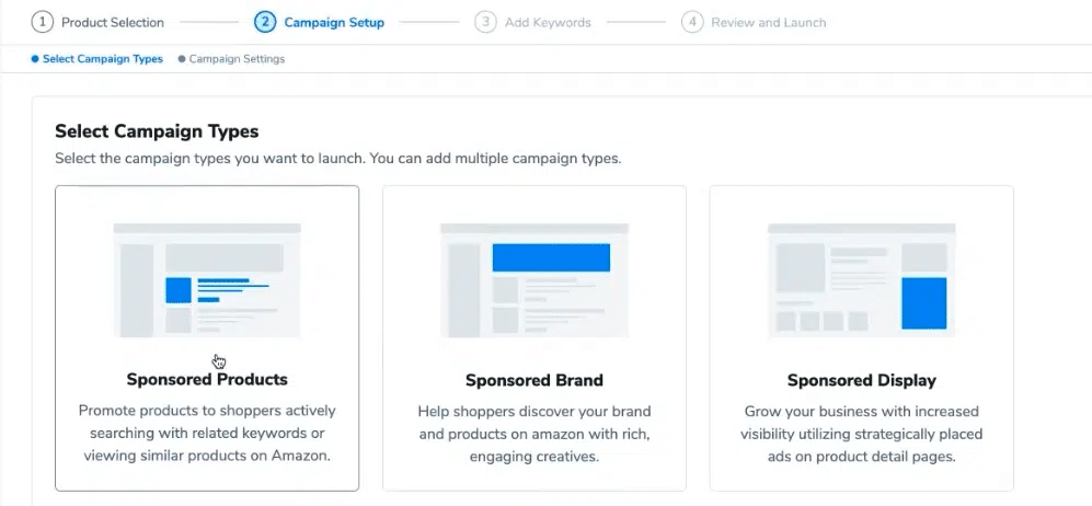 In this guide, we’ll continue focusing on Sponsored Products, so choose that option to proceed.