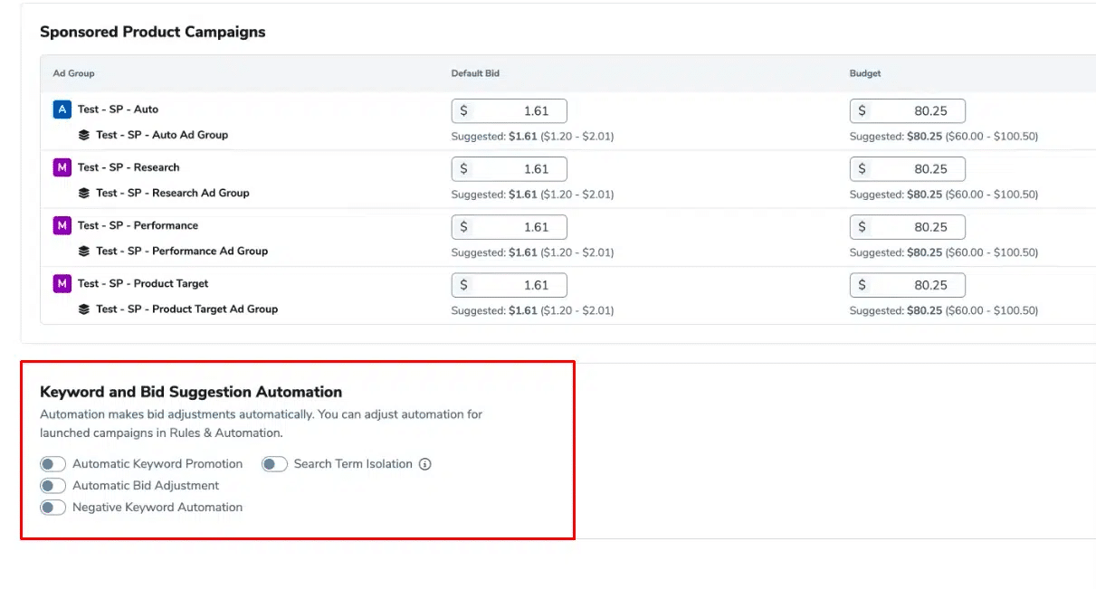 Helium 10 Ads also comes with built-in automation tools that make optimization much easier: