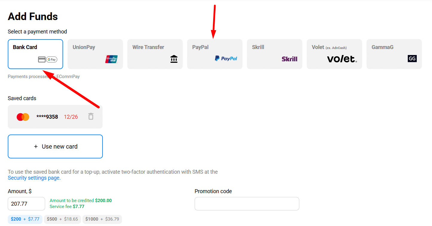 In general, PropellerAds allows you to fund your account using Visa and Mastercard. However, there’s one important detail: your card must support international payments.
