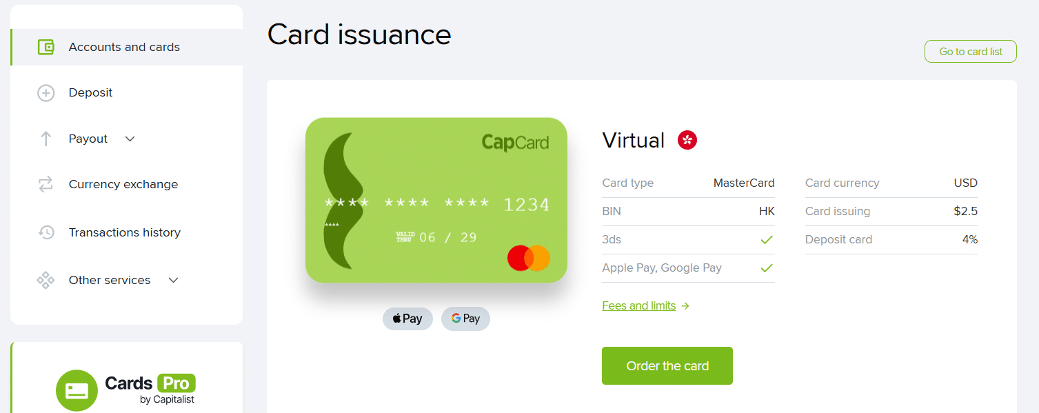 • Allows you to create virtual Visa cards directly inside the dashboard
