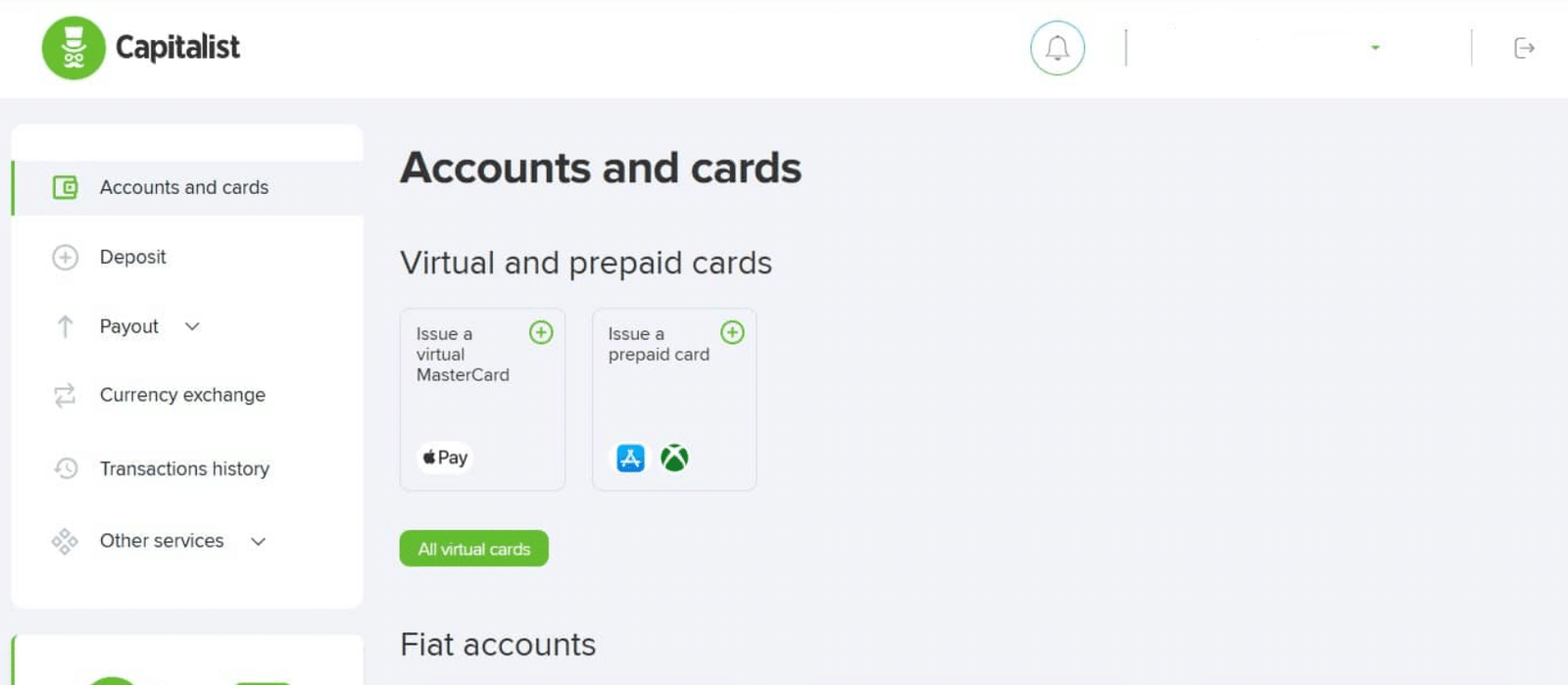 Capitalist also offers virtual cards, similar to Payoneer. Once you have funds in your account, you can use these cards for online payments.