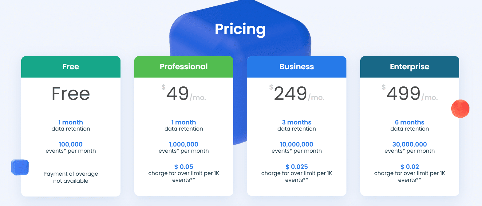 In practice, this works out to roughly $0.05 per 1,000 events, which is quite competitive compared to many other tracking tools on the market.