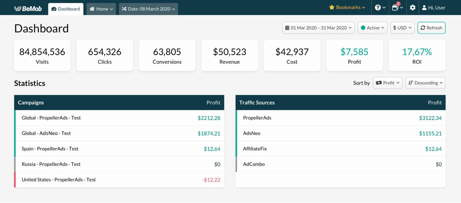 BeMob is a tracking tool used to monitor your advertising campaigns. In simple terms, it records and displays all the key data related to your campaigns — from clicks and impressions to conversions and revenue.