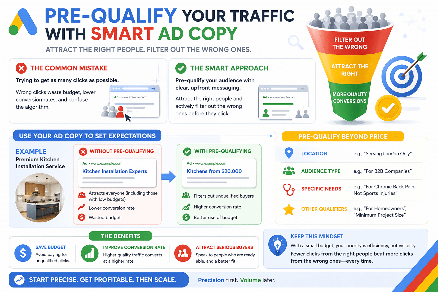 Instead of trying to attract everyone, your goal is to attract the right people — and actively filter out the wrong ones before they click.