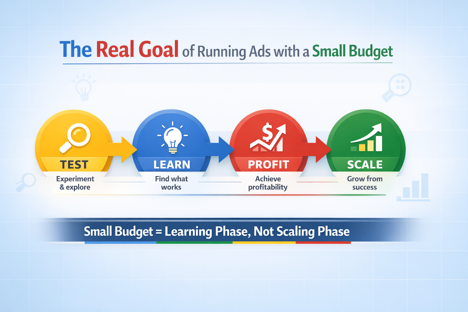 In fact, even businesses with larger budgets often start small on purpose. They use this phase to validate their campaigns, find profitable angles, and build a solid foundation before scaling.