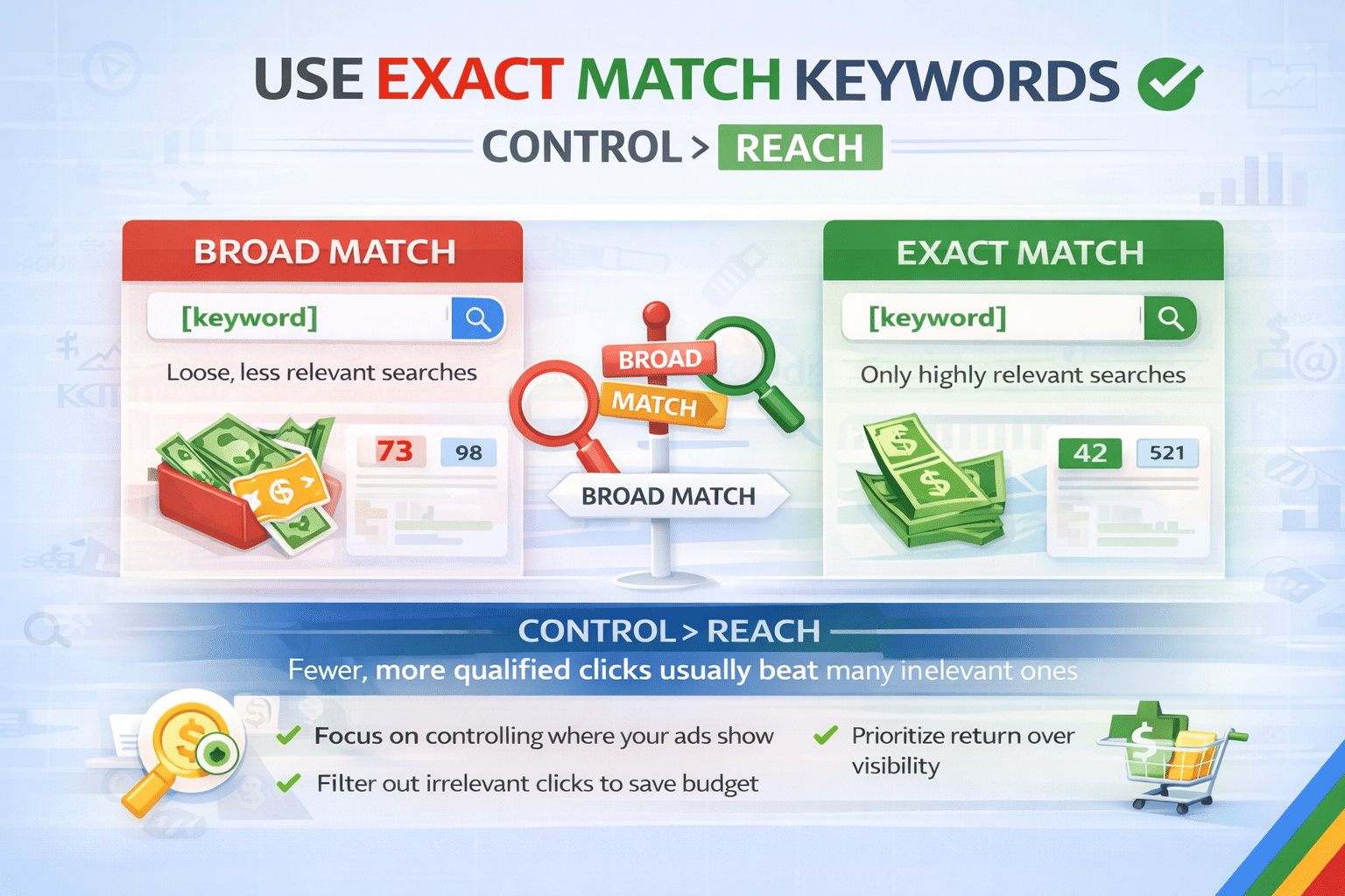 Most advertisers default to broad match. It gives you more reach, more impressions, and more traffic. But there’s a hidden cost — and with a limited budget, that cost becomes a serious problem.