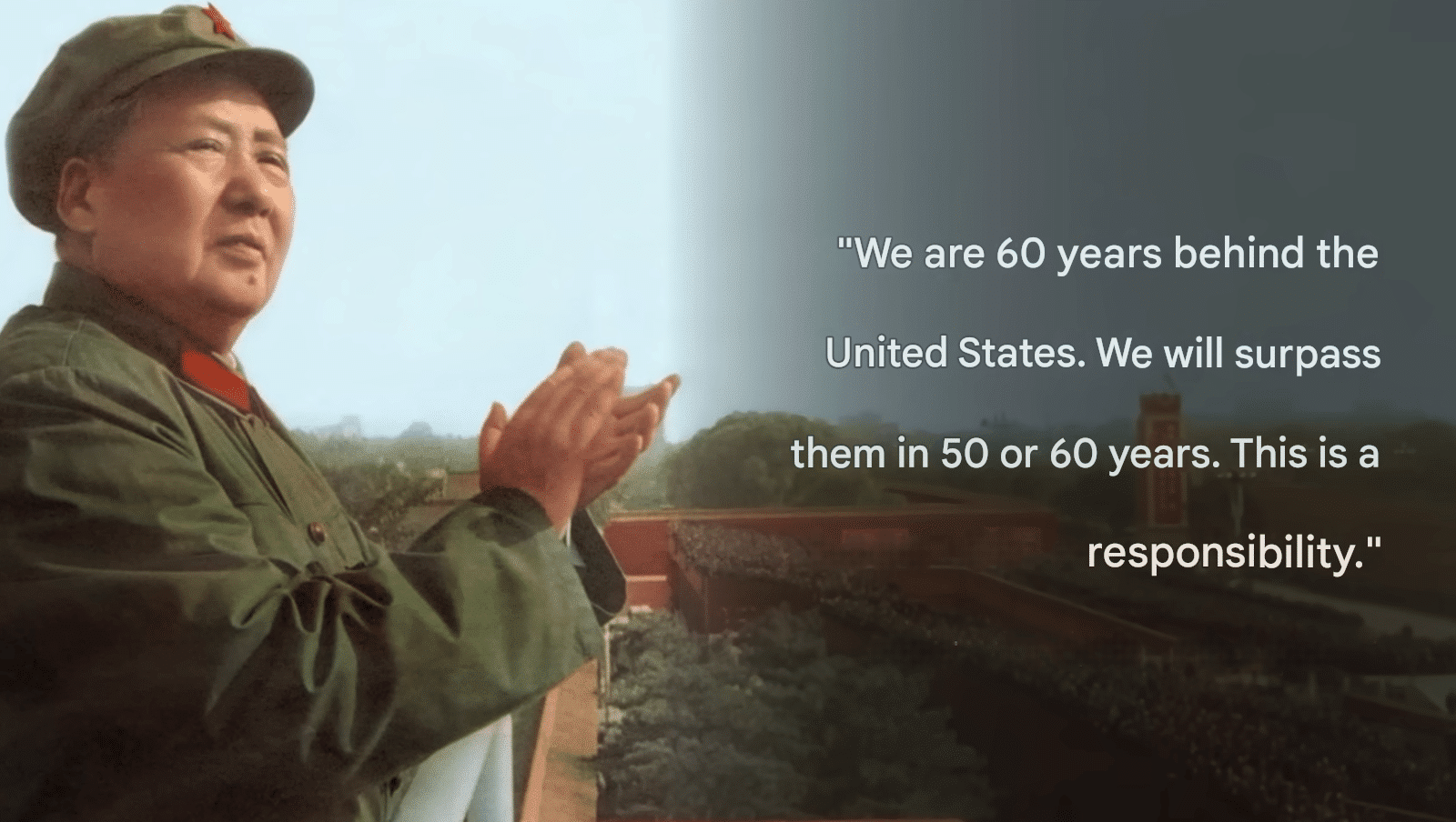 But that ambition quickly escalated. In 1957, during a visit to Moscow, Mao heard Soviet leader Nikita Khrushchev claim that the Soviet Union would overtake the United States within 15 years. That statement left a strong impression on him. If the Soviet Union needed decades to modernize, Mao wondered, why couldn’t China do it immediately? And so, he shortened the timeline—not 50 years, not even 15 years, but “right now.”