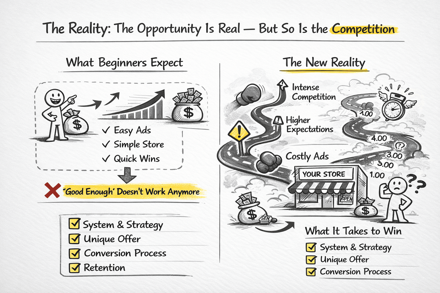 Because while the barrier to entry is low, the bar for success is much higher than it used to be. A few years ago, you could launch a simple store, run some ads, and generate sales without much structure. There was less competition, lower expectations, and more room for error.