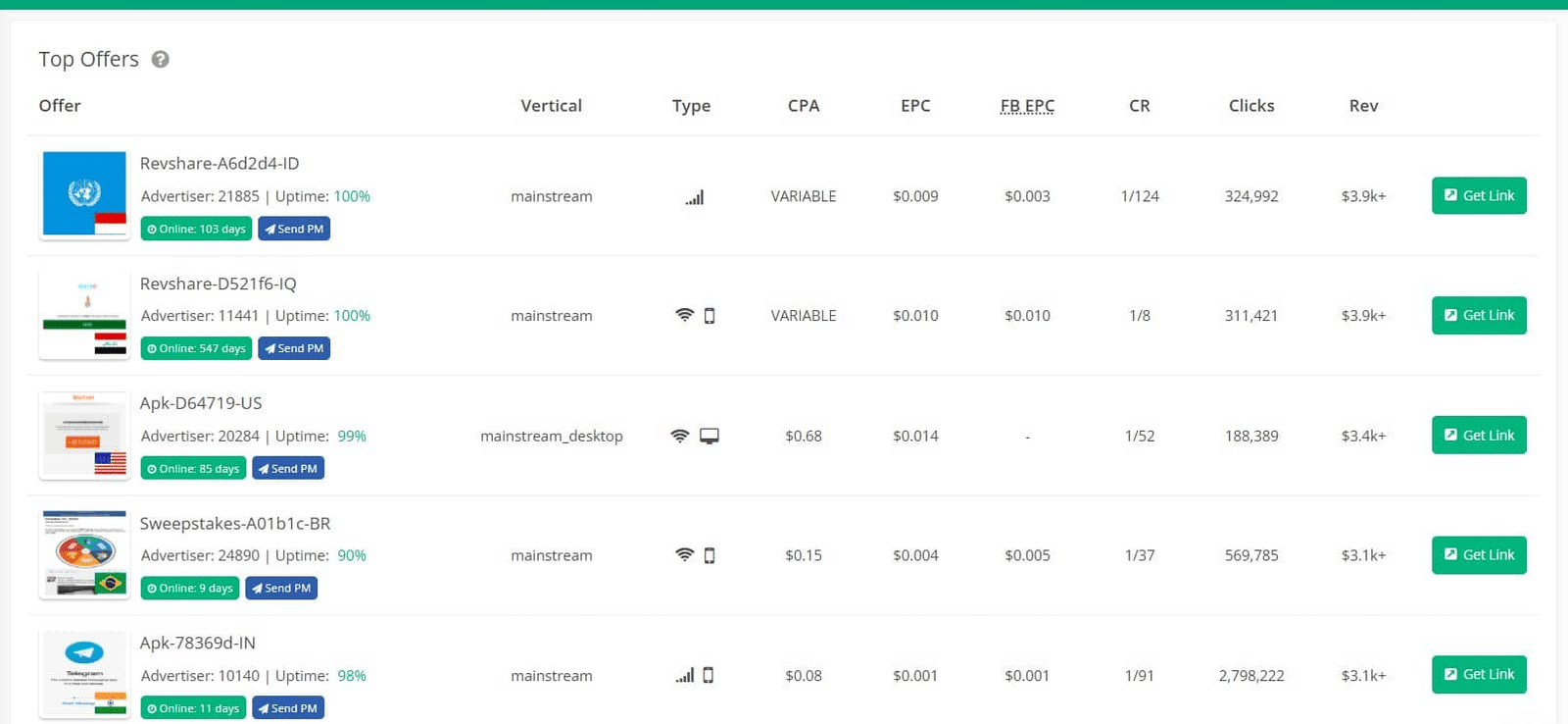 - Offer type (dating, nutra, mobile content, mVAS, etc.)